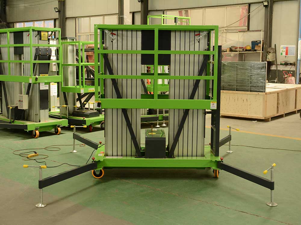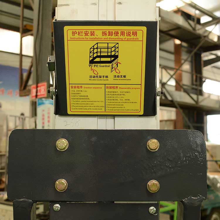 雙立柱鋁合金升降平臺:設計的產(chǎn)品,整體采用鋁型材精制而成由于型材強度高,使升降臺的偏轉與擺動。采用雙桅柱式結構,載重量大,平臺面積大,穩(wěn)定性好,運轉靈活,推行方便。它輕盈的外觀,能在空間內(nèi)發(fā)揮高的舉升能力。該升降平臺用于廠房、賓館、大廈、商場、車站、機場、體育場等。可用作電力線路、照明電器、高架管道等安裝維護,高空清潔等單人工作的高空作業(yè)。