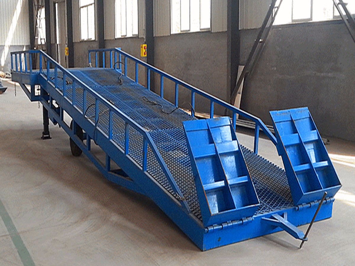 移動登車橋用于無裝卸設(shè)備的貨臺以及流動裝卸場所,是與叉車配合使用的貨物裝卸工具,借助該設(shè)備,叉車能直接駛?cè)肫囓噹M行批量裝卸作業(yè)。單人操作,不需動力電源,實現(xiàn)貨物的裝卸。加快無聊流通速度,獲取經(jīng)濟效益。